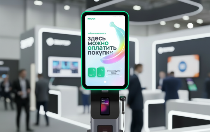 Эргономика. Пинпад расположен на удобной высоте для быстрой оплаты биометрией, а сканер ― для считывания штрихкодов.