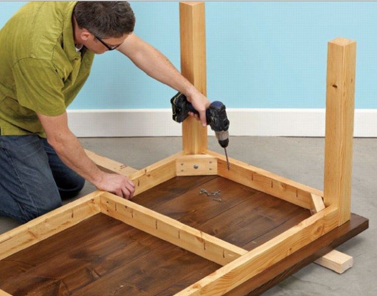 • Дополнительно: Клей для дерева (ПВА или столярный), наждачная бумага (зерно 80–240), лак или краска для отделки, возможно, ткань для обивки (если стол мягкий).